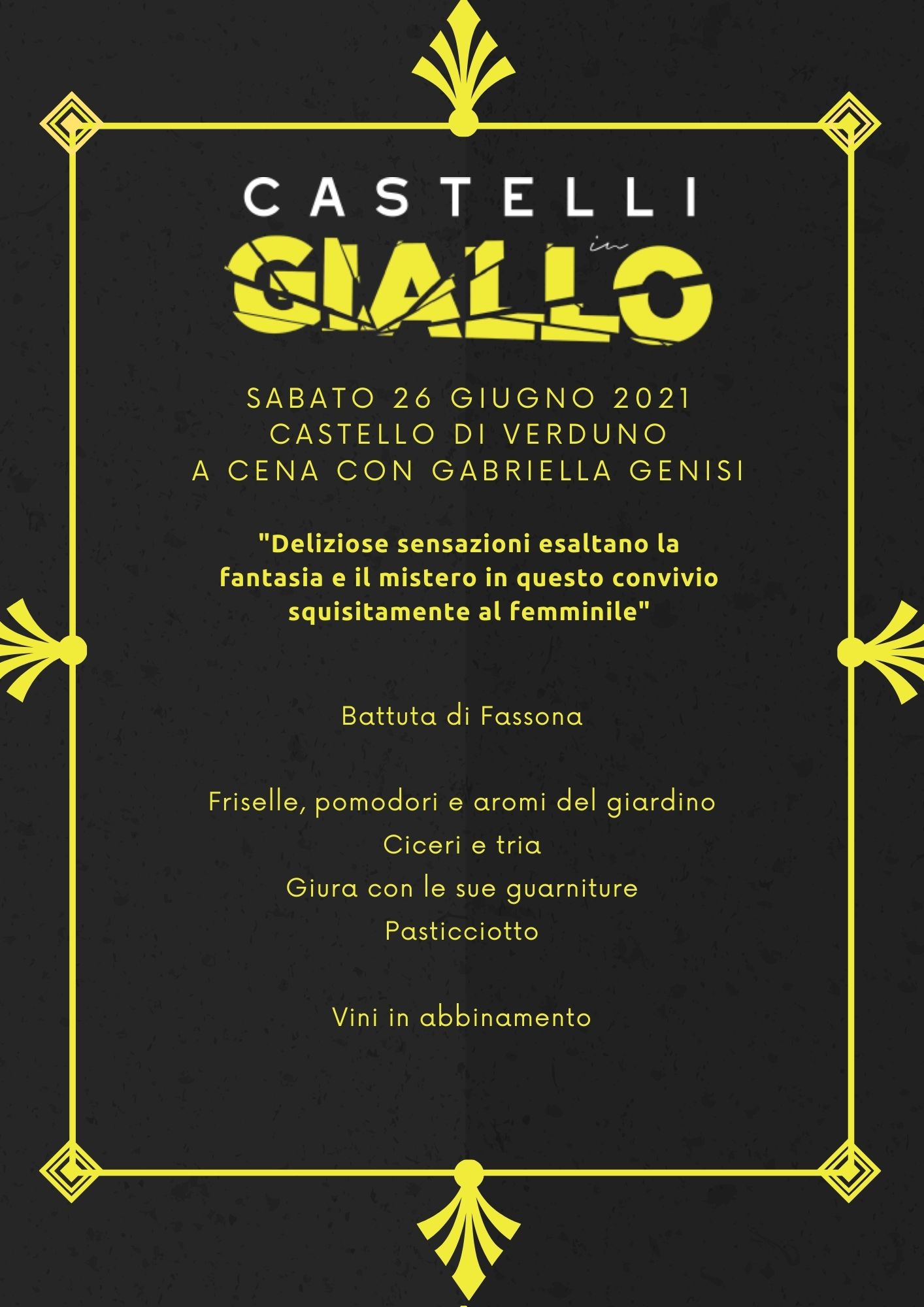 Le cene sono esclusivamente su prenotazione al costo di 60 euro