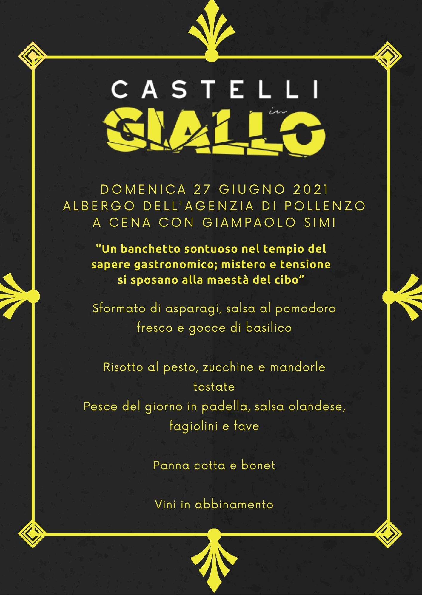 Le cene sono esclusivamente su prenotazione al costo di 60 euro