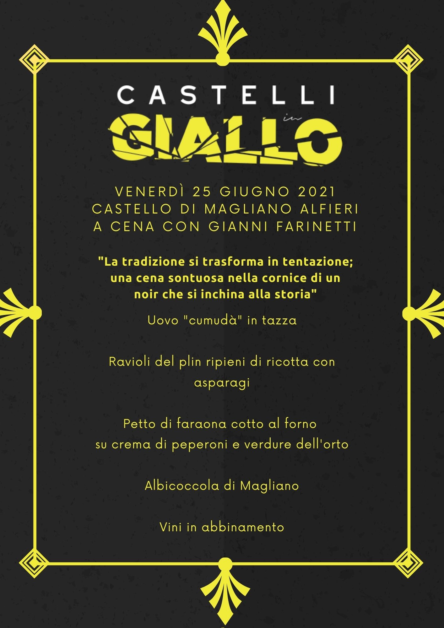 Le cene sono esclusivamente su prenotazione al costo di 60 euro